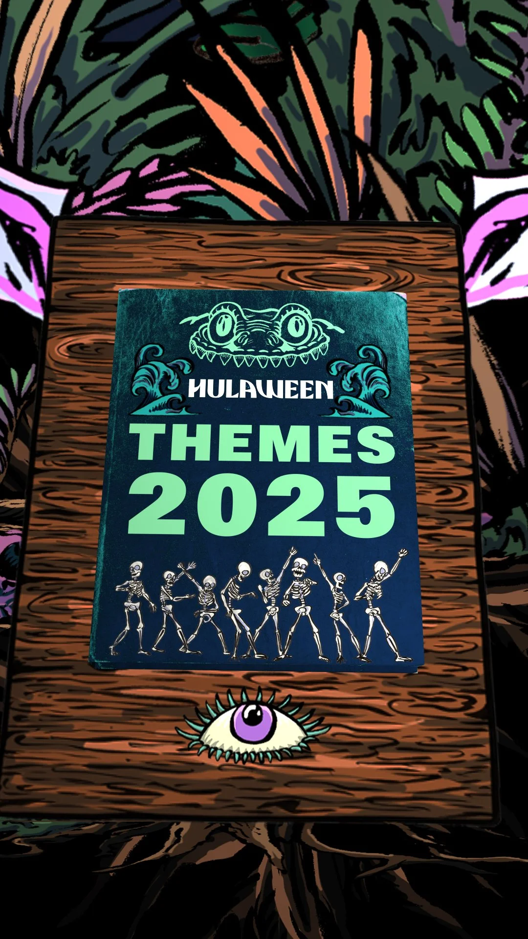 Annual theme announcement animation and illustration for HULAWEEN Music and Arts Festival in Florida.