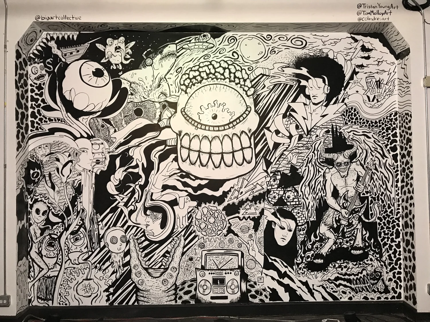 “Dystopian Chicago” Doodle Wall painted by Tom Molloy, Chris Arnold, and Luis Colindres.     @tommolloyart @chrisarnoldart