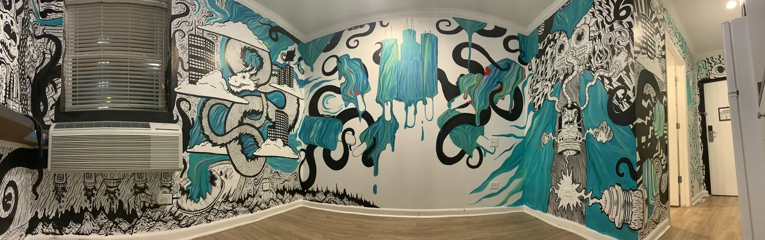 Hotel Chicago West Loop mural in collaboration with artists Tom Molloy & Tristan Young.  Panoramic view.    @tommolloyart @tristanyoungart
